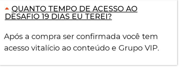 se você não gostar ou não se adaptar ao nosso método, basta enviar um e-mail para DESAFIO19DIAS.CONTATO@GMAIL.COM DENTRO DO PERÍODO DE GARANTIA E CANCELAMOS SUA COMPRA, REEMBOLSANDO 100% DO VALOR PAGO SEM BUROCRACIAS. ESSE É O NOSSO COMPROMISSO COM VOCÊ!